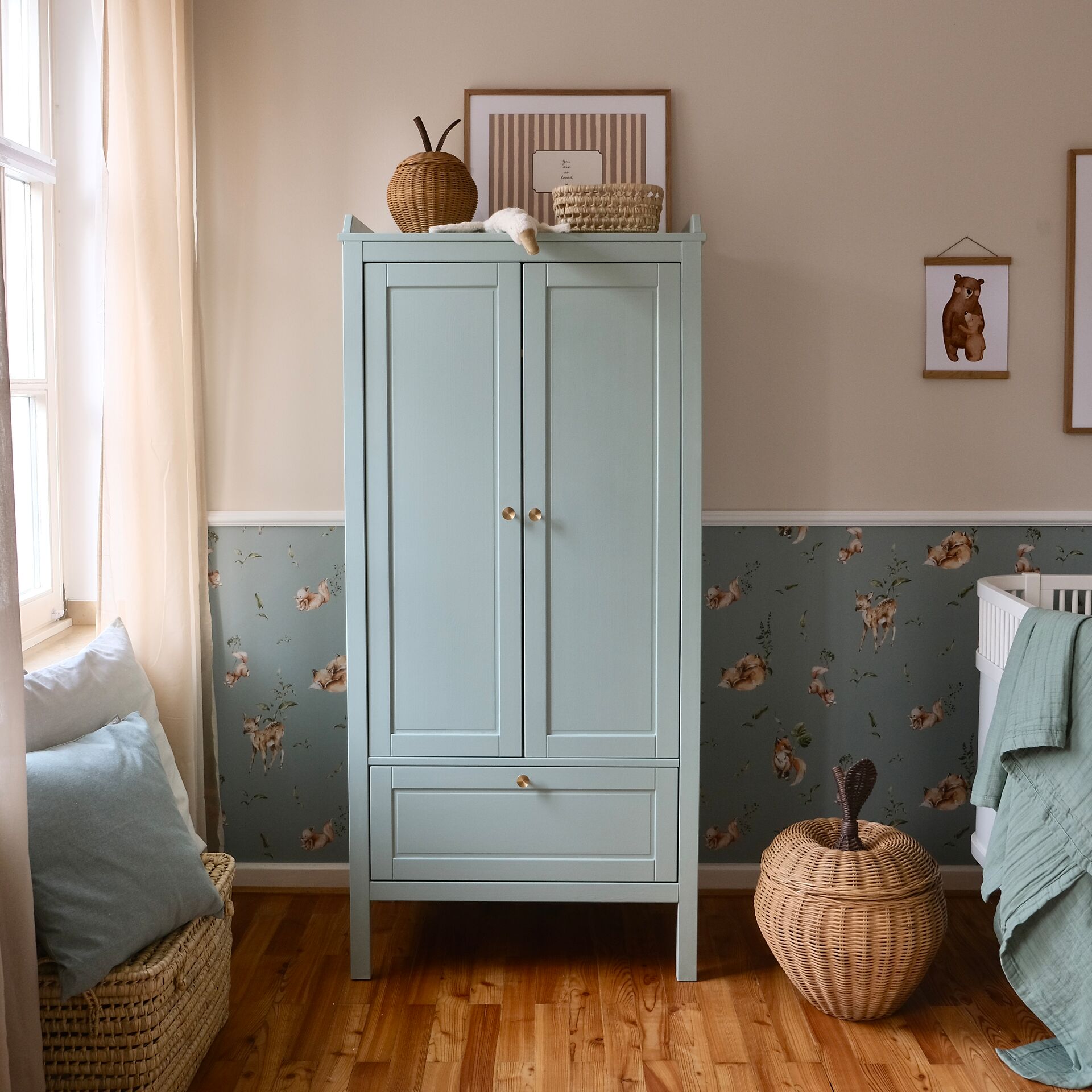 Unsere LittlePomp Kreidelacke eignen sich perfekt als unbedenkliche Holzfarbe für Kindermöbel. Eine Gestaltung in Kombination von Wand- und Möbelfarben fördert die beruhigende Wirkung der Pastellfarben besonders.