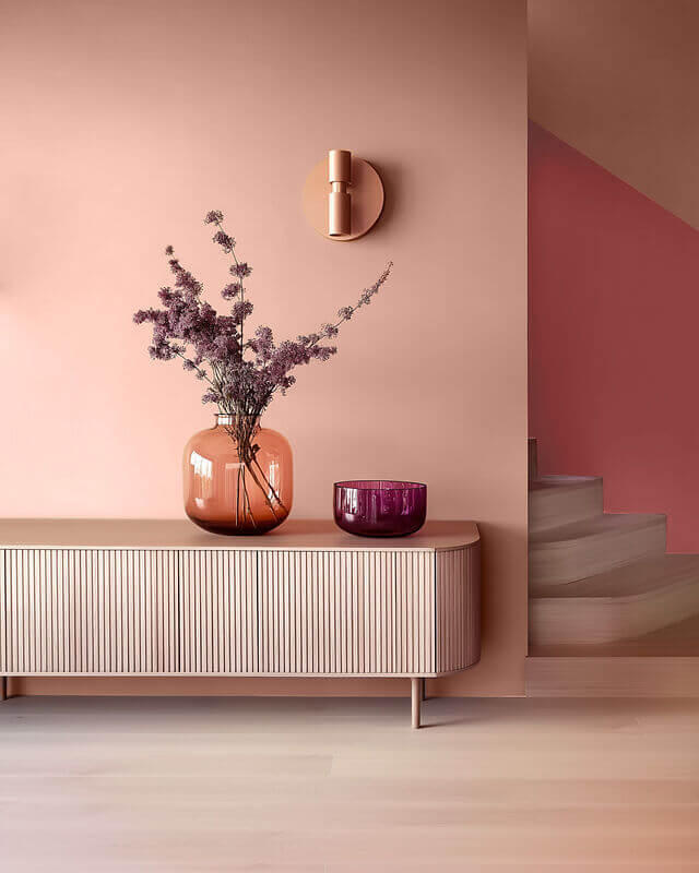 Obwohl der Stil von neutralen Farben dominiert wird, kannst du mit gedeckten Farben wie Grün, zartem Rosé oder einem sanften Blauton gezielte Farbtupfer setzen, die für eine gute Laune sorgen. Diese Farben erinnern an die Landschaften Skandinaviens und passen perfekt zur klaren Ästhetik.