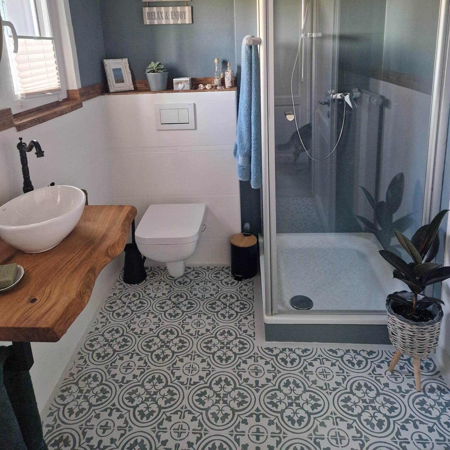 Mach Deine Bodenfliesen zum Kunstwerk! Mit unseren speziellen Fliesenlacken kannst Du alte Bodenfliesen ganz einfach neu streichen – langlebig, strapazierfähig und in Deinen Lieblingsfarben. Noch kreativer? Verwende Schablonen für einzigartige Muster und Designs. Starte jetzt Dein DIY-Projekt und verleihe Deinen Bodenfliesen einen individuellen Look, der begeistert!